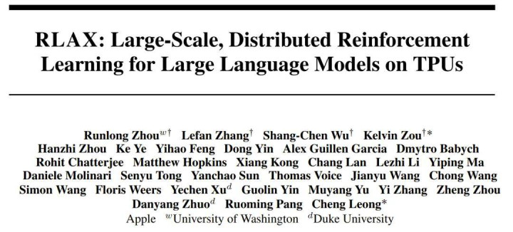 论文中,苹果揭示了他们开发的一个基于 TPU 的可扩展 RL 框架 RLAX。