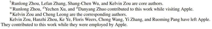 通讯作者则是 Kelvin Zou 和 Cheng Leong。其中 Kelvin Zou 曾在苹果担任 Principal Engineer,现已经入职 Meta,成为了一位 AI 研究科学家。而 Cheng Leong 则是已在苹果工作超过 13 年的老将,现任苹果 AI Infra(人工智能基础设施)主管。