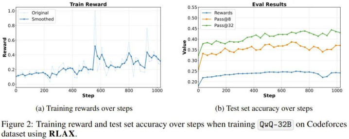 结果倒是非常亮眼。RLAX 仅用 12 小时 48 分钟,在 1024 个 v5p TPU 上将 QwQ-32B 的 pass@8 准确率提高了 12.8%,同时在训练期间保持了对任务抢占的鲁棒性。